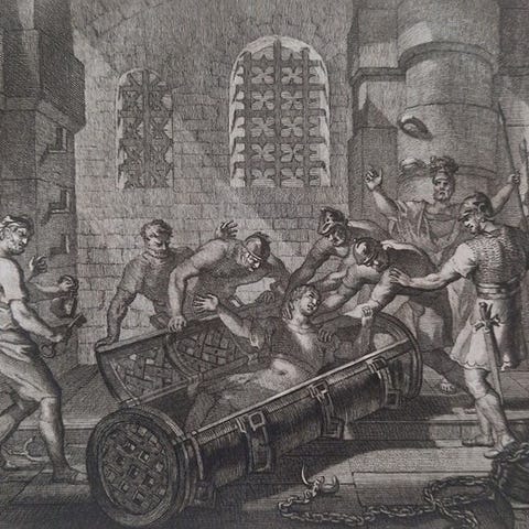 Emblem-bog Kerkelyke en wereldlyke historie, fra skabelsen af verden til året Jesu Kristi, af Georgius Hornius, Balthasar Bekker, Melchior Leydekker og Petrus Schaeck, på hollandsk, udgave fra slutningen af det 17. århundrede, halv læderbinding, 11111 sider, 18 x 12 cm, Amsterdam/Rotterdam, 1734–1735, komplet med kobberstik af Jan Luiken og i pæn stand. Klik på den blå "gå til varen" knap, for at købe eller byde på denne vare. Den samlede pris vil blive vist inden du afgiver dit bud.