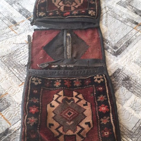 Disse traditionelle salttasker eller saddel-tasker fra Afghanistan er et håndfremstillet tekstil, der bruges af nomade-stammer, især Belutschen eller Turkmenere.