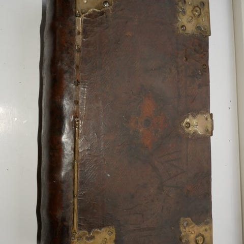 Siderne er delvis ikke længere fuldt forbundet med bogblokken. De er let brune,