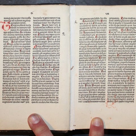 Giovanni Marchesini, forfatter af Mammotrectus super Bibliam, trykt i Venedig i 1492 som incunable, latin, 344 sider, format 18 × 13 cm, pergamentbind, 1. udgave i dette format, forlag Bernardinus Locatellus; tilstand Meget god. Klik på den blå "gå til varen" knap, for at købe eller byde på denne vare. Den samlede pris vil blive vist inden du afgiver dit bud.