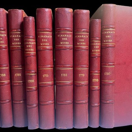Anonym forfatter præsenterer Le Nostradamus moderne. Almanach national et patriotique, Liege–Paris, 1790, første udgave på fransk, 144 sider, in-12, blå kartonbindning med senere rød læder titel, god stand, indersiden frisk. Klik på den blå "gå til varen" knap, for at købe eller byde på denne vare. Den samlede pris vil blive vist inden du afgiver dit bud.