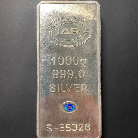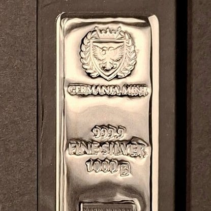 En 1 kg sølvbar med .999 renhed fra H. Drijfhout & Zoon i Nederlandene, med dimensionerne 9 cm × 4 cm × 2,5 cm. Klik på den blå "gå til varen" knap, for at købe eller byde på denne vare. Den samlede pris vil blive vist inden du afgiver dit bud.