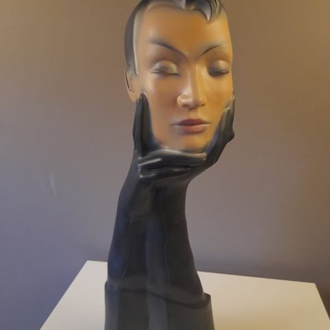 Rød gipsdisplaybuste Dior fra Frankrig, 52 cm høj, 17 cm bred og 17 cm dyb, 4,6 kg, ikke underskrevet og i god stand. Klik på den blå "gå til varen" knap, for at købe eller byde på denne vare. Den samlede pris vil blive vist inden du afgiver dit bud.