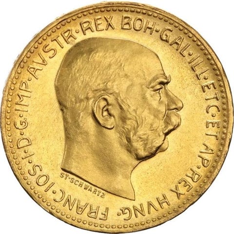 En 20 Corona guldkønt fra Østrig, år 1915, vægt 6,77 g. Klik på den blå "gå til varen" knap, for at købe eller byde på denne vare. Den samlede pris vil blive vist inden du afgiver dit bud.