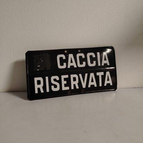 Flot antikt jernskilt med tryk, belagt på en blikplade i blankt look.