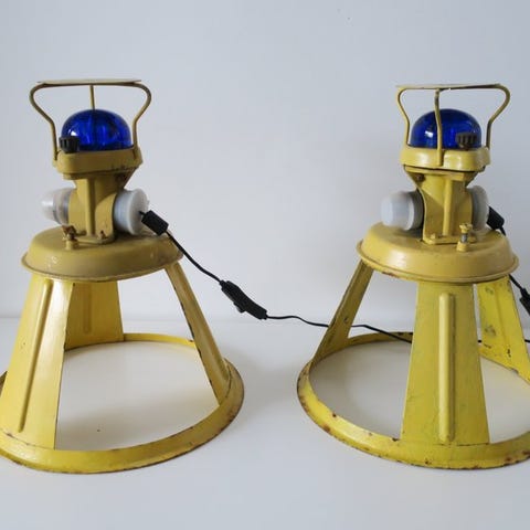 Stabile tekniske lamper, sandsynligvis af militært oprindelse, brugt i felts-telte eller køretøjer under nødsituationer. Designet tyder på brug i barske miljøer – enkelt, holdbart og funktionelt.