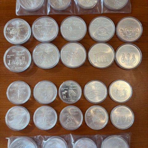 Ti canadiske mønthenge med et sølv mindedollar og andre valører i kopper-nikkel, nikkel og bronze; tilstand ukendt/ikke-certificeret og fra verdensmønter (før 2000, ikke euro). Klik på den blå "gå til varen" knap, for at købe eller byde på denne vare. Den samlede pris vil blive vist inden du afgiver dit bud.