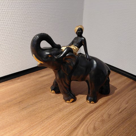 Elefant med snablen oppe, muligvis en ældre elefant, har lidt krakeleringer og et enkelt lille afslag på en ene fod