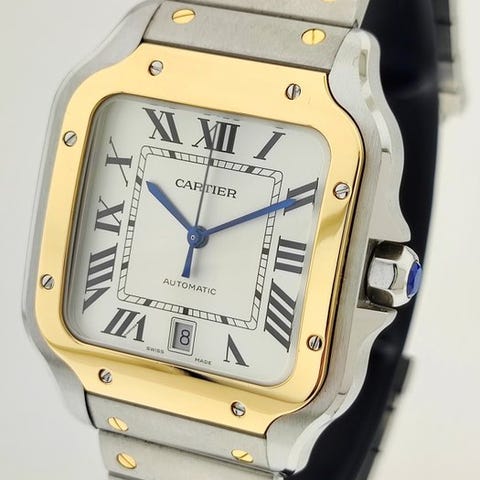 Cartier Santos Demoiselle quartz til kvinder i stål med urkasse 20 x 28 mm, hvidskærm/ urdial med romerske tal, armbånd i guld/stål, stållunette, safirglas, vandtæthed 3 ATM, dobbelt foldespænde. Klik på den blå "gå til varen" knap, for at købe eller byde på denne vare. Den samlede pris vil blive vist inden du afgiver dit bud.