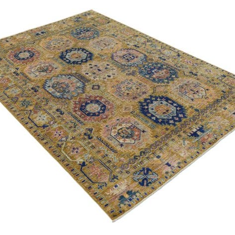 Højkvalitets håndvævet designer-tæppe med klassisk Kazak-mønster i harmonisk farvevalg.