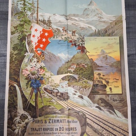 Autentisk og original schweizisk rejseplakat for Wengenbanen til Kleine Scheidegg og Jungfrau, i Berner Oberland.