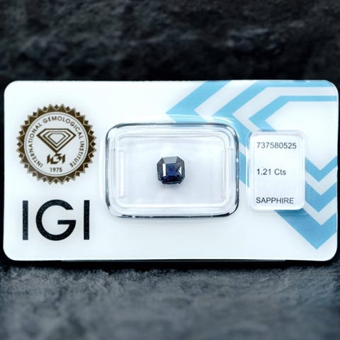 Sapphire, 1 sten, 1,11 ct, blå, firkantet smaragdcuts, klarhed negligibel, cut Very good, oprindelse Afrika, IGI laboratorierapport 657434920, ingen indikationer på behandling, forseglet af laboratoriet. Klik på den blå "gå til varen" knap, for at købe eller byde på denne vare. Den samlede pris vil blive vist inden du afgiver dit bud.