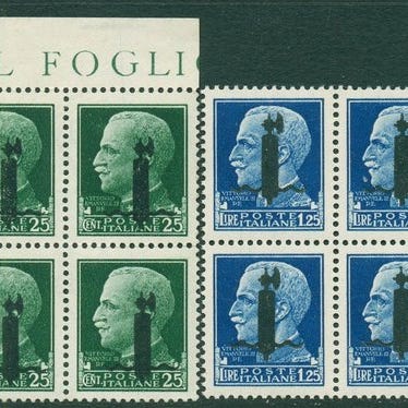 RSI - Imperial, to blokker med overtryk af forskellige typer, fra Italien, fra 1944; stand: Ny uden gum. Sassone 495A-494C. Klik på den blå "gå til varen" knap, for at købe eller byde på denne vare. Den samlede pris vil blive vist inden du afgiver dit bud.