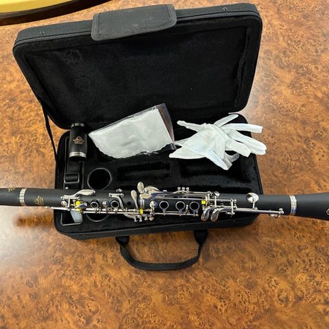 Clarinetto Rampone Milano Brevettato. Realizzato in legno, con meccaniche in metallo argentato.