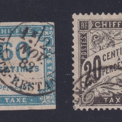 Frankrig: Lot af 6 Téléphone-stemler, nr. 13 og 15 overtrykt og underskrevet Calves, nr. 24–27 afregnet, dateret 1896–1906, oblitereret, Yvert-katalog, med certifikat. Klik på den blå "gå til varen" knap, for at købe eller byde på denne vare. Den samlede pris vil blive vist inden du afgiver dit bud.