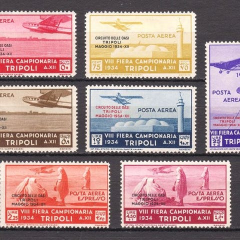 Geografisk oprindelse: Tripolitania Italiana; Titel: Posta Aerea, 3 værdier med dobbelt overtryk, hvoraf en er albino; Tilstand: Ny uden gum; År: 1934; Katalog Sassone A9+12+13; Certifikat Cilio. Klik på den blå "gå til varen" knap, for at købe eller byde på denne vare. Den samlede pris vil blive vist inden du afgiver dit bud.