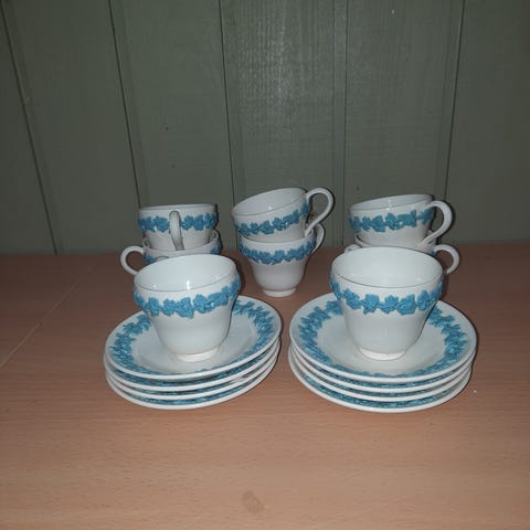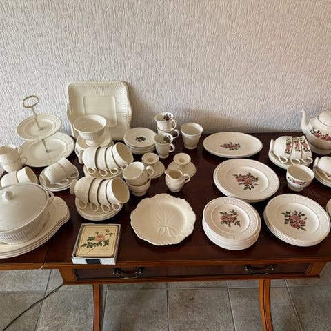 Vigtigt tesæt fra Wedgwood, model Etruria Barlaston, fremstillet i ædel keramik i slutningen af 1980'erne.