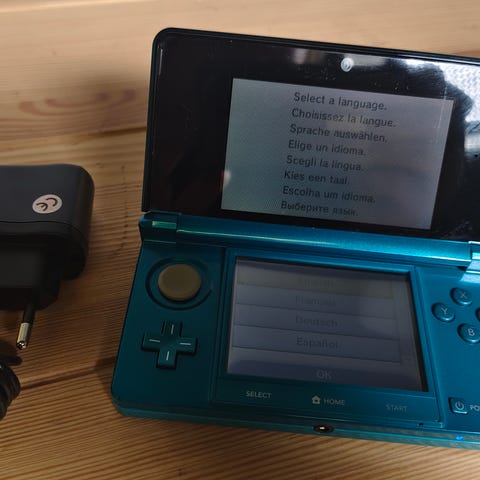 Nintendo 3DS i perfekt stand, komplet med kasse, etui, manualer og tilbehør. Med 3 spil.