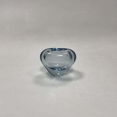 Holmegaard Menuet Glasvase. Farve: Akva. Form: Hjerte. Designet af Per Lütken. I produktion mellem 1955-85. Signeret PL 1961. Måler 8 cm / 3,15 in.