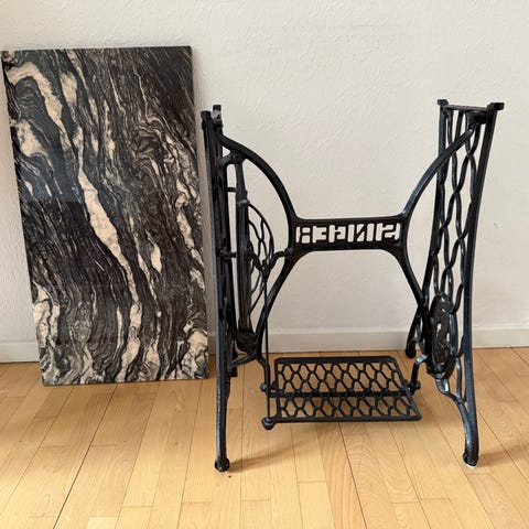 Originalt og gammelt Singer symaskinebord med marmorplade
