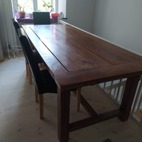 Bordet kan også anvendes udendørs. Bordet er fra Havemøbelland