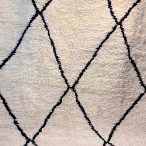 SENDER GERNE. HELT NYT Ægte Marokkansk Beni Ouarain tæppe i 100% uld 🐑. Dejlig blødt og tykt kvalitet. Importeret fra Marokko og har aldrig været brugt. Har også andre Beni tæpper til salg. Måler ca 170×260