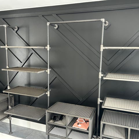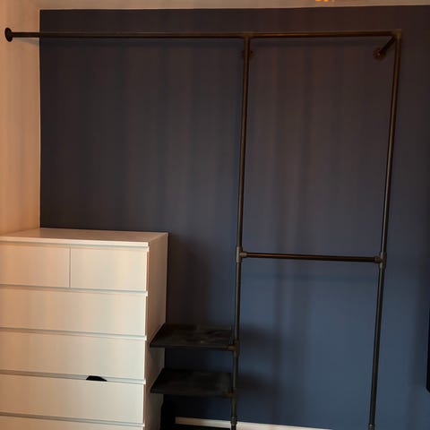 Hylde delen måler 272 b x 183-185 h. Afstande. mellem hylderne er 40 cm og starter 35 cm fra gulvet. Hylderne er lavet i egetræ