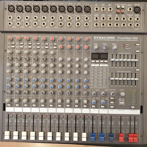 Har den mixer i overskud virker fint bort set fra at kanal 1 kan lave vrøvl en sjælen gang imellem så drej på midt potmidter så funger den igen