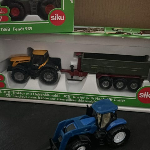 Siku Liebherr model entreprenørmaskine med lavblokanhænger i gul farve. Sættet består af en gravemaskine på bælter og en lastbil med fladbed-trailer til transport. Egnet som samlerobjekt eller legetøjsmodel til leg med entreprenør- og byggepladsscenarier.