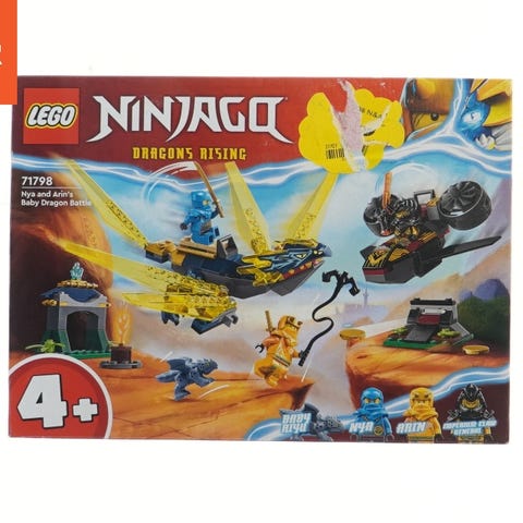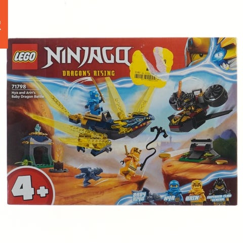Dette er et LEGO Ninjago sæt med titlen "Dragons Rising". Sæt nummeret er 71798, og det indeholder figurerne Nya, Arin, og Baby Riyu. Det er designet til børn fra 4 år og op, og inkluderer elementer som en lille drage, flere karakterfigurer, og andre byggedele som vises på boksen.