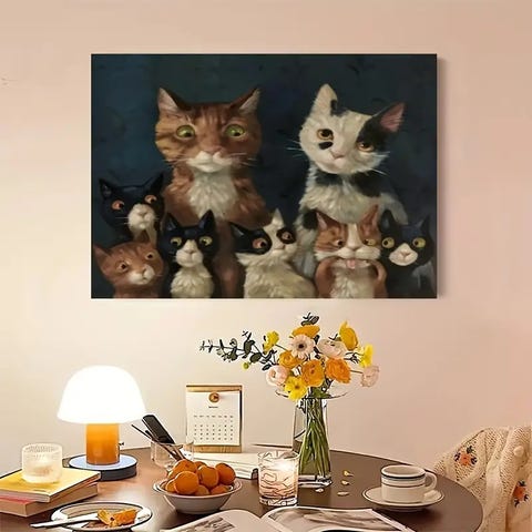* Lærredsmaleri/tryk; Smukke katte - i abstrakt stil