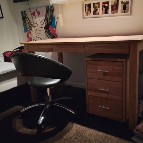 Skrivebord, reol, sækkestole, 500, 500, 100