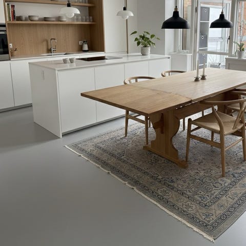 Smukt spisebord i massivt egetræ købt for 30 år siden hos Brdr.Friis. Bordet har dannet rammen om et utal af måltider i en stor og sammenbragt familie. Nu er børnene fløjet fra reden og boligen mindre derfor sælger jeg bordet.