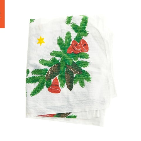 Dugen er fremstillet i stof og måler 92x82 cm. Den har et festligt julemotiv med tryk af lys, grankvister og hjerter på en orange baggrund, hvilket gør den ideel til juleborddækning.