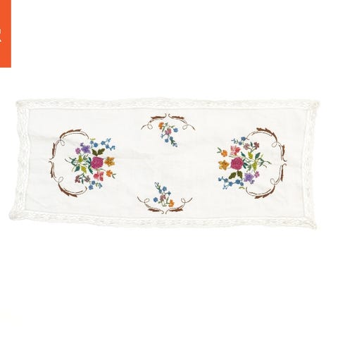 Tags: bordløber, broderi, blomster, dekoration, tekstil