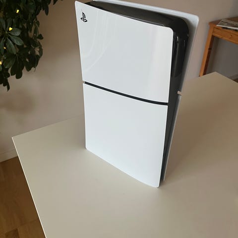Jeg sælger den her Playstation 5 slim 1tb, da jeg ikke får den brugt rigtigt. Jeg har kun spillet på den kortvarigt og herefter har den bare mere eller mindre stået til pynt.