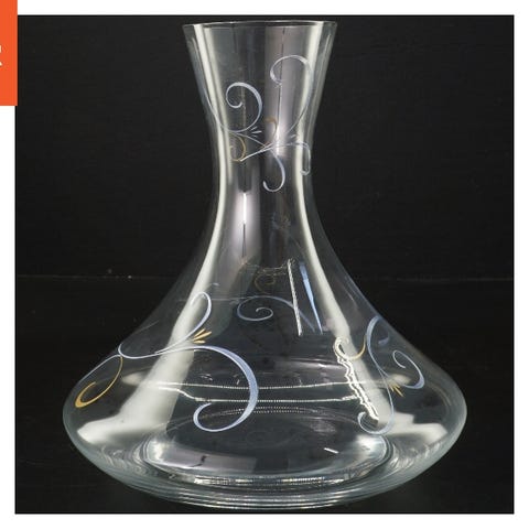 Glaskande med en højde på 22 cm. Fyrklöveren Victoria kombinerer bølgende former, diskrete farver og smukke gulddetaljer. Det sarte, snoede mønster i blå, grå og guld er designet af Anne Rooslien som en hyldest til kærligheden. Perfekt til en luksuriøs borddækning, igen og igen! En fremragende bryllupsgave eller housewarming-gave.