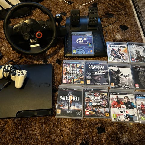 Uncharted 1-2-3, buzz, Call of duty MW3, cars 2, gta5, motor storm, red dead redemtion, Skate, , 2 controllere. Der medfølger også en tredje som jeg er usikker på virker.