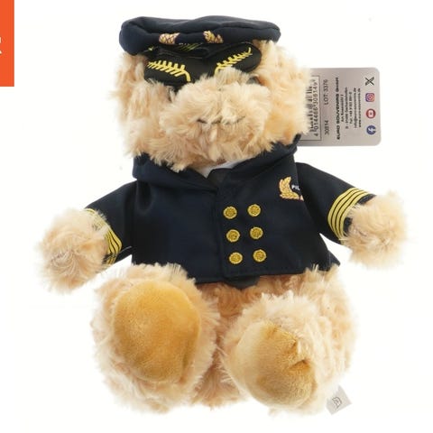 Denne teddy bamse er blød og hyggelig, med en lys brun farve og et venligt ansigt. Bamsen har en hvid sløjfe rundt om halsen og røde hjerteformede detaljer under fødderne. Den måler 36x20 cm, hvilket gør den til en perfekt krammeven og dekorativ del af børneværelset.