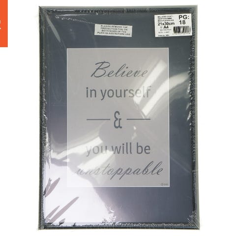 En simpel billederamme med en tekst på forsiden. Rammen har en sort kant og måler 31x25 cm. Bagsiden har clips, som gør det nemt at skifte indholdet. Det nuværende indhold fremhæver en kampagne for en iPod Nano. Det er velegnet til at holde et dokument, plakat eller billede på samme størrelse.