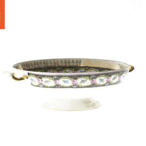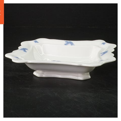 Porcelænsfad fra Gustavberg i serien Blå Blom, med dimensionerne 22x18 cm. Fadet har en oval form og en scalloped kant, der tilføjer en elegant touch. Rundt om kanten er der små blå mønstre, som giver fadet et charmerende og klassisk udseende. Bagsiden af fadet er ensfarvet uden mønster.