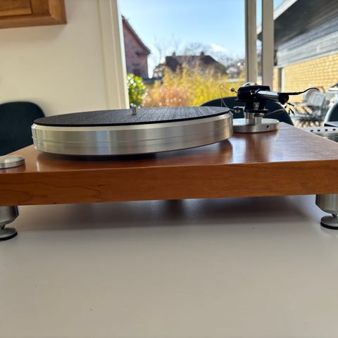 Rega Planar 3 Anniversary Edition pladespiller i træfinish. Modellen har glas-tallerken og manuel betjening med tonearm i sort finish. Pladespilleren er velegnet til afspilning af vinylplader i et hi-fi anlæg og kan tilsluttes en separat forstærker eller receiver med phono-indgang eller ekstern RIAA-forstærker. Designet gør den egnet til placering på reol eller hi-fi-møbel. Pick up er næsten ny Ortofon LVB 250 2MR.