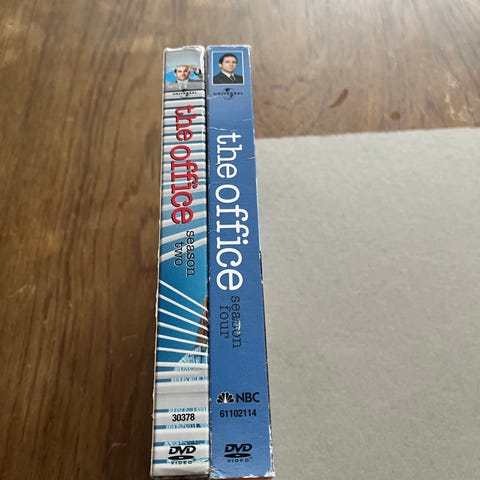 The Office dvd med to diske. Serien er en komedie-tv-serie. Dvd’erne leveres i plastlommer som vist på billederne. Yderligere oplysninger om sæson eller afsnit fremgår af trykket på skiverne.