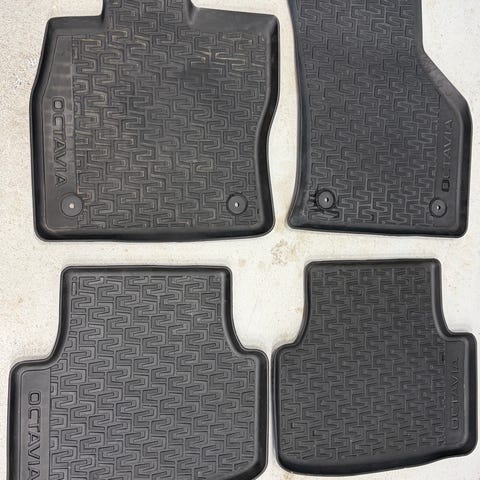 Skoda Fabia bilmåtter i sæt med 4 stk. Sorte tekstilmåtter der passer til Skoda Fabia 2015-2025 Måtterne er formsyede til bilens fodrum og har fastgørelsespunkter på forreste måtter til montering i bilen.