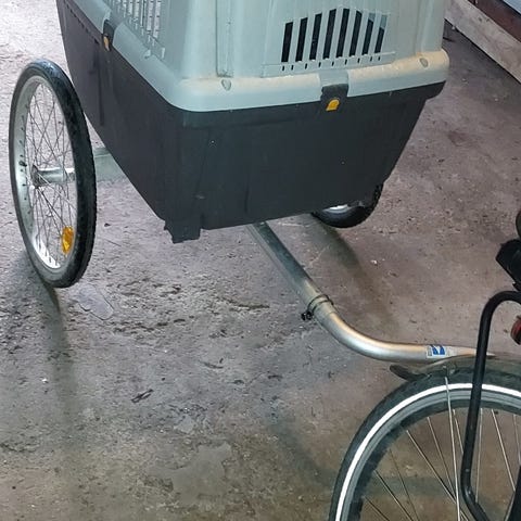 Sælger min cykelvogn, den kan sættes fast på stort set alle cykler uden problem. Kan eventuel hjælpe med at gøre det.