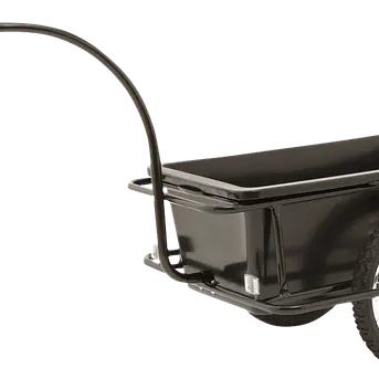 Den har desværre ingen front hjul, så den kan kun anvendes som cykelvogn.