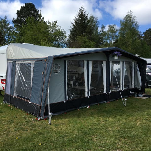 Til vognen medfølger der et velholdt Isabella Penta telt med megastænger.