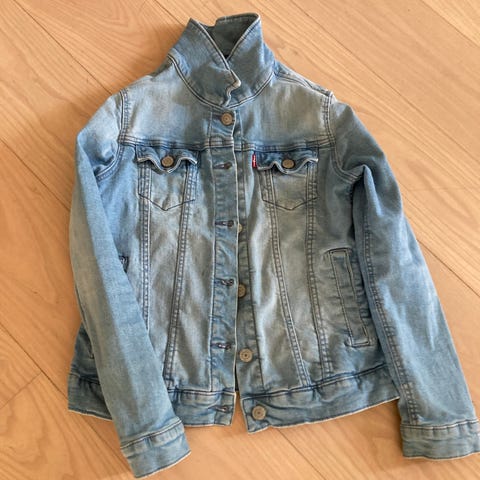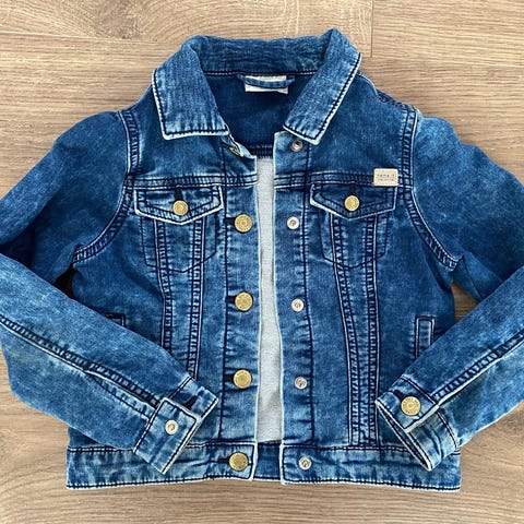 Name it denim jakke til pige i str. 116. Jakken er i blå denim med knaplukning foran og klassisk krave. Den har lange ærmer med manchetter og lommedetaljer foran. Egnet som let overtøj til hverdagsbrug.