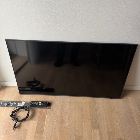 Samsung tv med buet fod og fjernbetjening. Tv’et viser smart-tv brugerflade med adgang til streamingtjenester som blandt andet Netflix og YouTube. Velegnet til almindeligt tv-brug og streaming. Nærmere modelbetegnelse og skærmstørrelse fremgår ikke af oplysningerne.