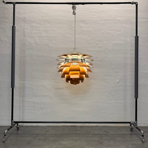 Lampen er designet af Poul Henningsen og produceret hos Louis Poulsen.